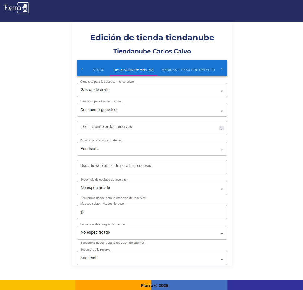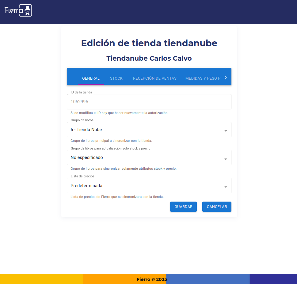 Configuración: abrir el sitio donde se consultan y editan los parámetros completos de la integración.