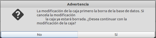 El sistema advierte que esta acción elimina la caja de la base de datos.