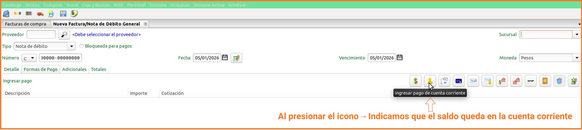 Solo en situaciones particulares —por ejemplo, cuando el proveedor no opera con cuenta corriente o el importe se abona en el momento— la nota de débito puede registrarse sin impacto en saldo, quedando únicamente como comprobante informativo.
