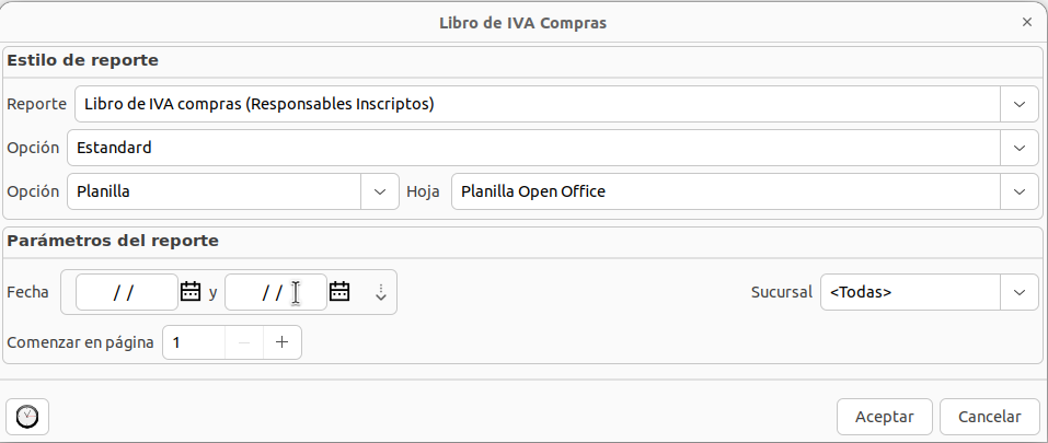 Compras > Reportes > Libro de IVA Compras
