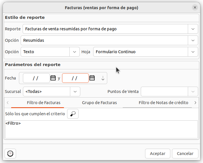 Ventas → Reportes → Facturas (ventas por forma de pago)