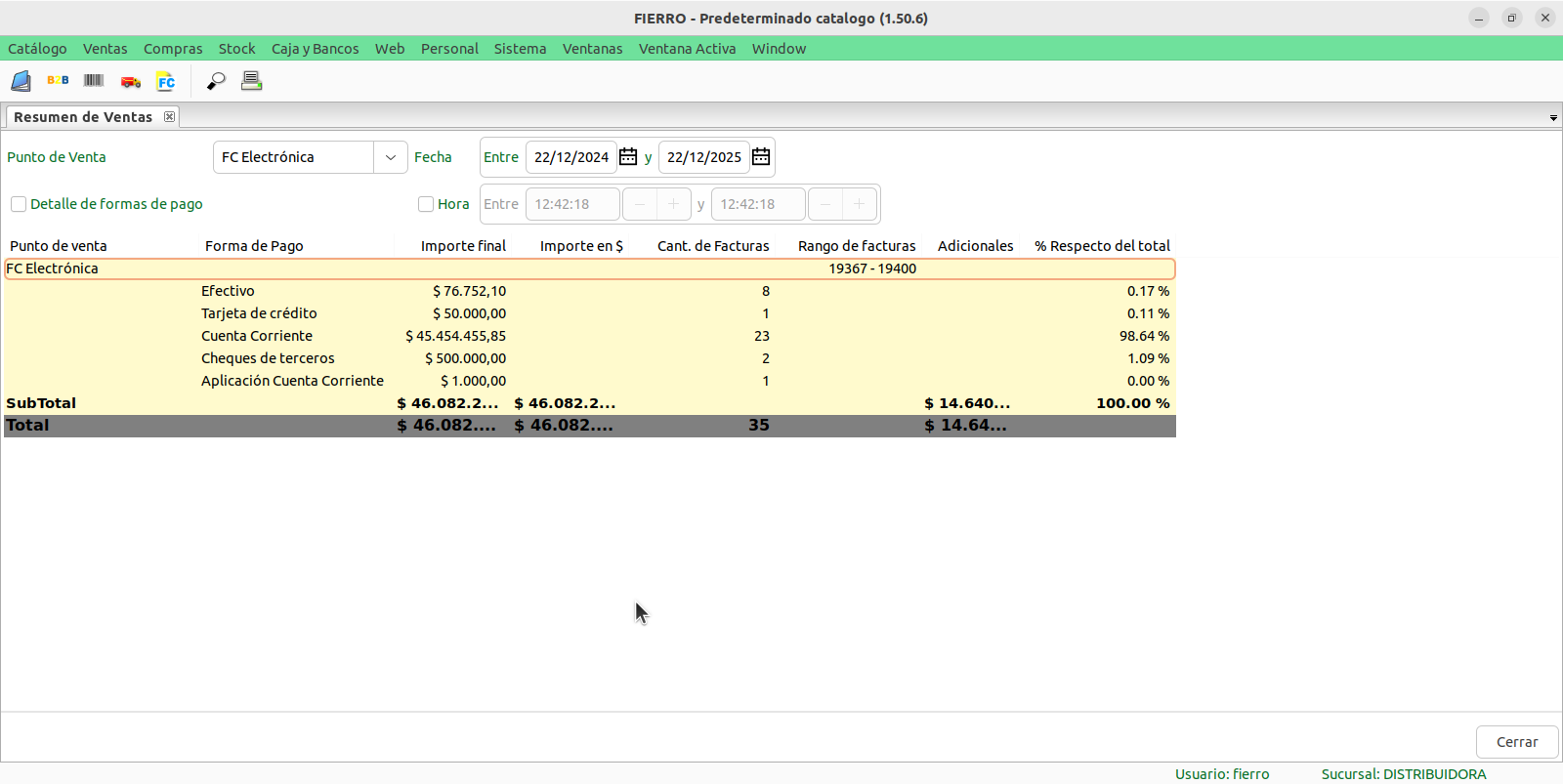 Este es el reporte principal para ver las ventas agrupadas por forma de pago.