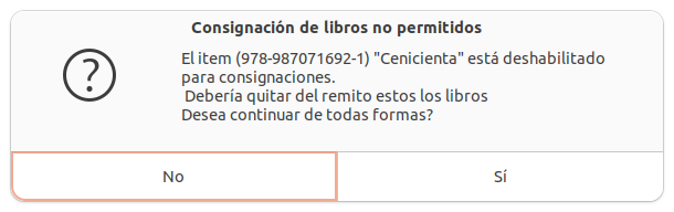 Para el caso de documentos de consignación, se puede configurar un grupo de libros para que el sistema verifique si el título pertenece a ese grupo al momento de crear el documento.